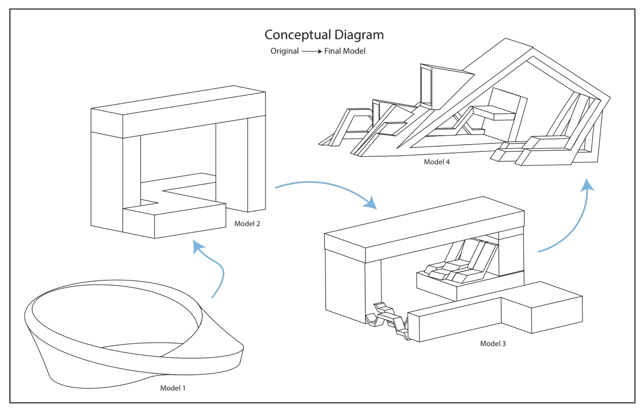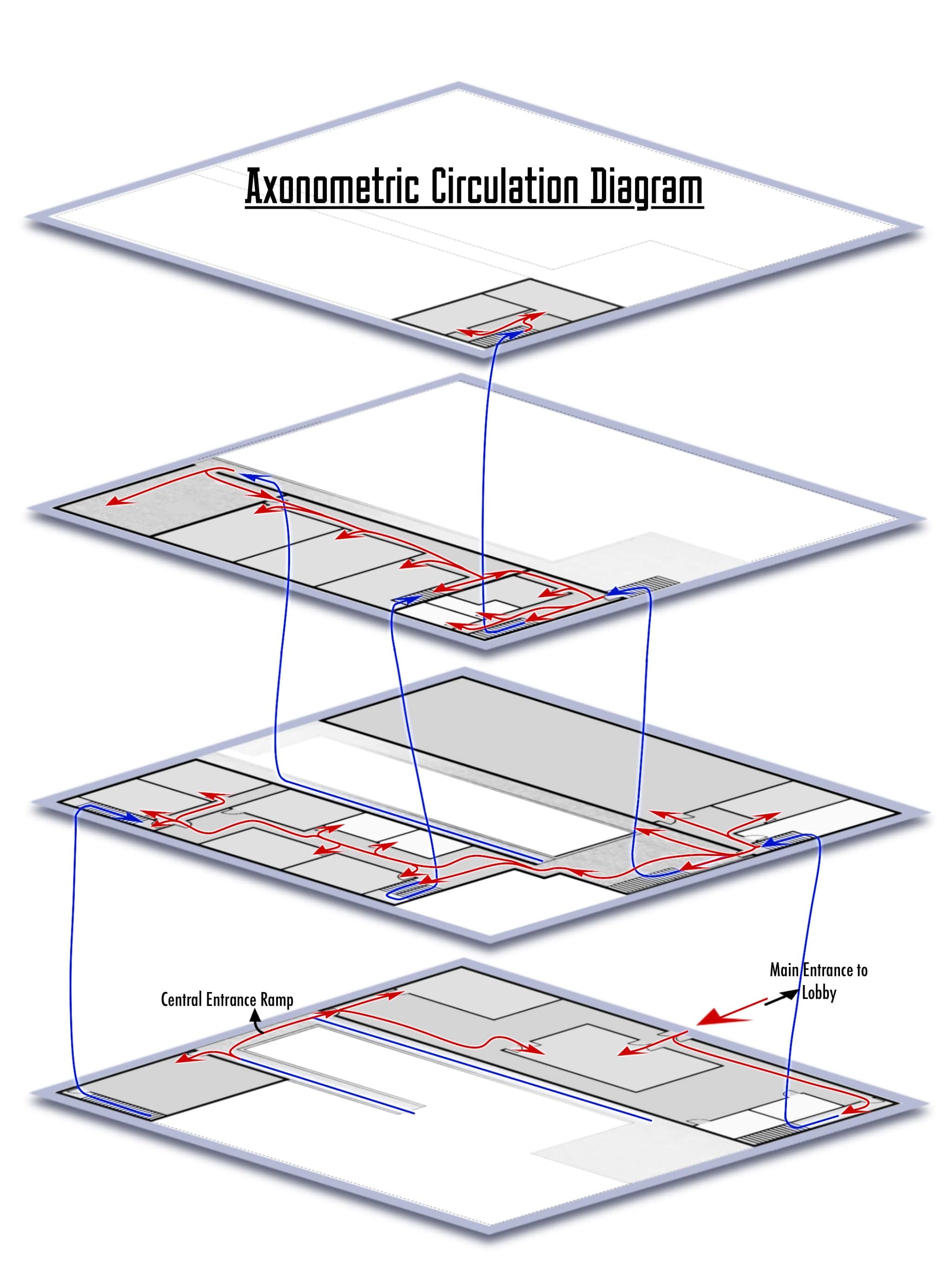 This project reworks two existing buildings on Governors Island through an adaptive reuse strategy rather than demolition. One of the original structures is divided into three volumes and lifted, creating a new courtyard at the center of the site. A continuous ramp system weaves through the complex, linking old and new elements while improving accessibility across all levels.