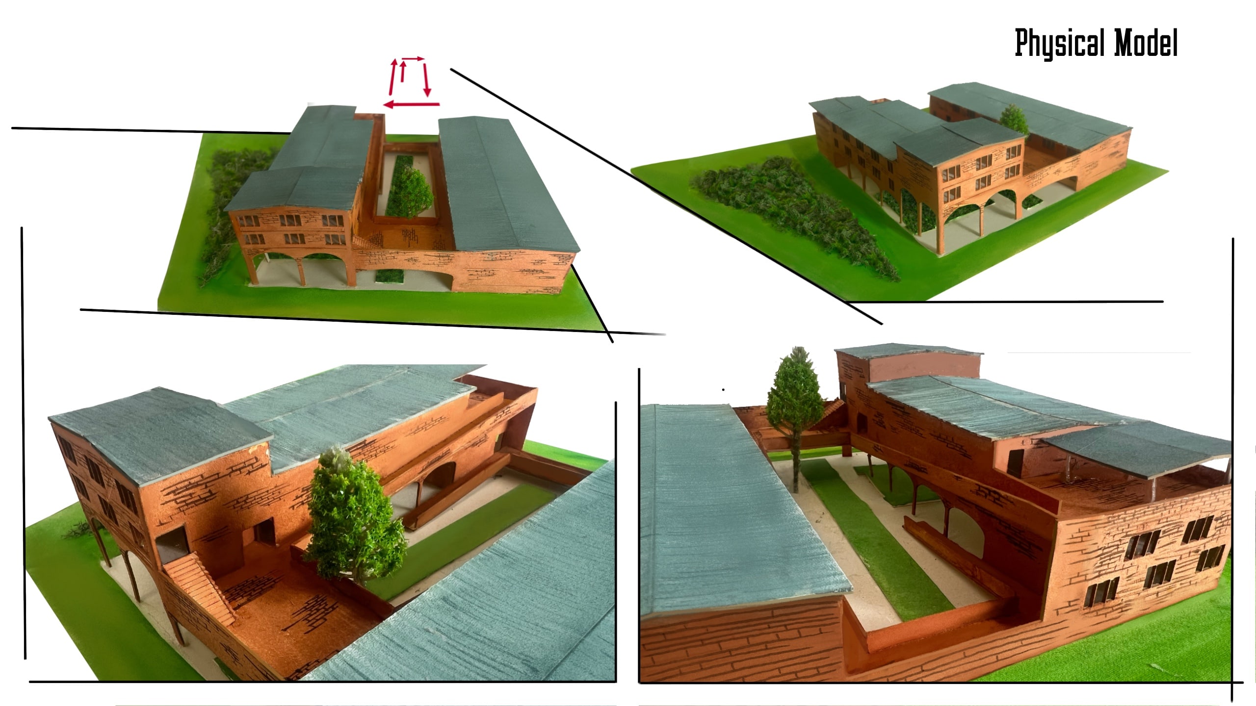Seating along the ramps, beneath the lifted building, and in the courtyard introduces moments for rest and informal gathering, so circulation and social space overlap rather than stay separate. By operating on the existing fabric—materially, spatially, and programmatically—the project reduces waste, lowers construction impact, and turns a previously closed ensemble into a more open and connected place.